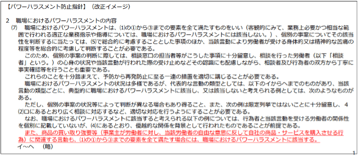 「自爆営業」に係る、パワハラ防止指針上の規定案