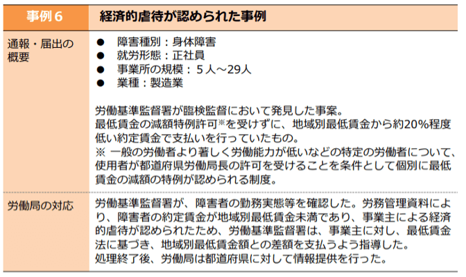 最低賃金に関連する、障がい者への経済的虐待事例を確認しましょう。