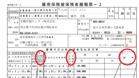 出典:ハローワーク「雇用保険の具体的な手続き_離職_記入例:雇用保険被保険者離職票-2
