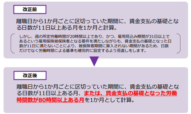 出典:鳥取労働局「失業等給付の受給資格を得るために必要な「被保険者期間」の算定方法が変わります