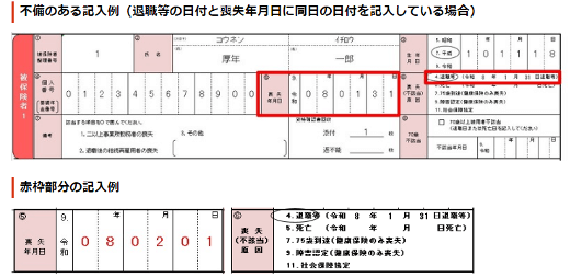・退職日と資格喪失日の記載不備