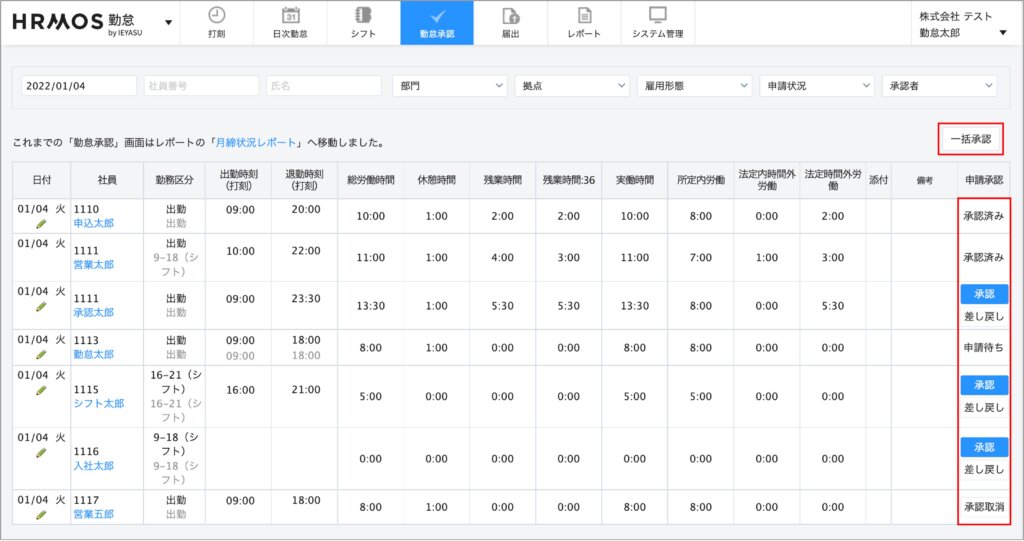【機能改善】勤怠承認画面の変更で複数人の勤怠を一括承認できるようになります │ HRMOS勤怠