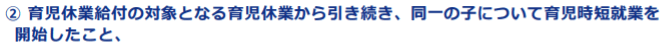 ⇒具体的には、育児休業終了の翌日(復職日)から育児時短就業を開始する場合に加え、育児休業を終了した日と育児時短就業を開始した日の間が14日以内の場合をいう