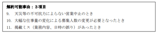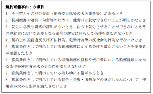 なお、就労開始時刻の 24 時間前以前は、上記8項目に加えて、以下の理由による解約も可能。