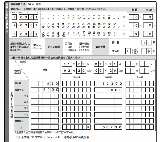 傷病手当金支給申請書「給与形態別」記入例