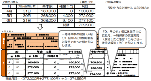 • 休業手当等が支払われた月を含む4月、5月、6月の平均額により決定