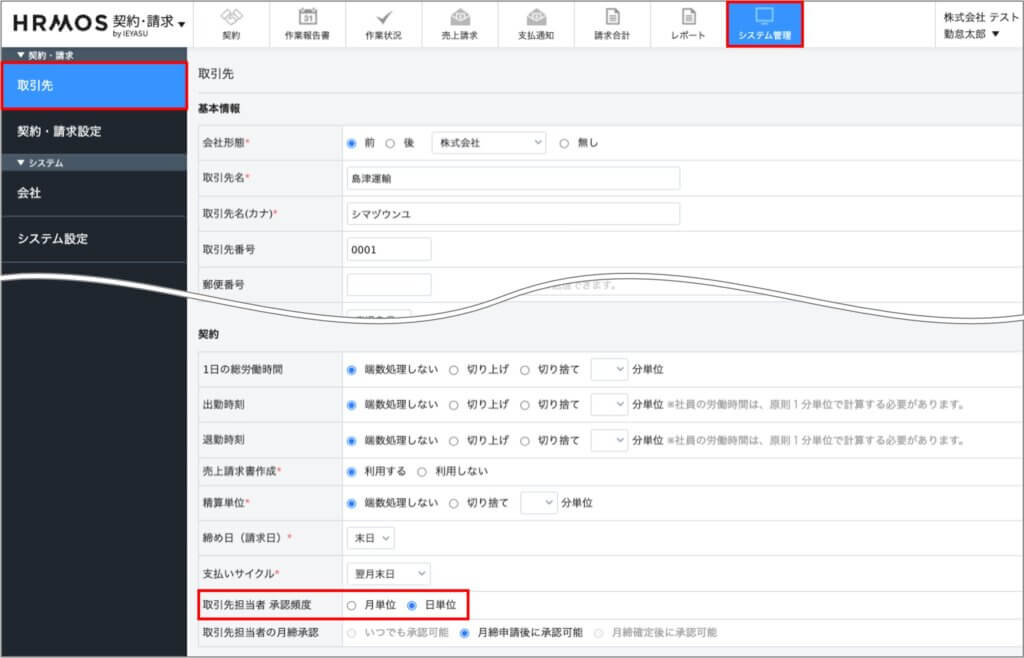 ハーモス勤怠ヘルプページ > 契約・請求マニュアル > 取引先