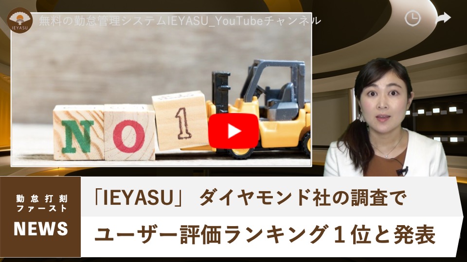 無料のクラウド勤怠管理システム「IEYASU」は、株式会社ダイヤモンド社(本社:東京都渋谷区、代表取締役社長:石田哲哉)が運営するクラウドサービス紹介メディア「ダイヤモンド働き方研究所」の『おすすめ勤怠管理サービスベスト17・完全マップ』という掲載記事において、「ユーザー評価ランキング1位」として紹介されました。