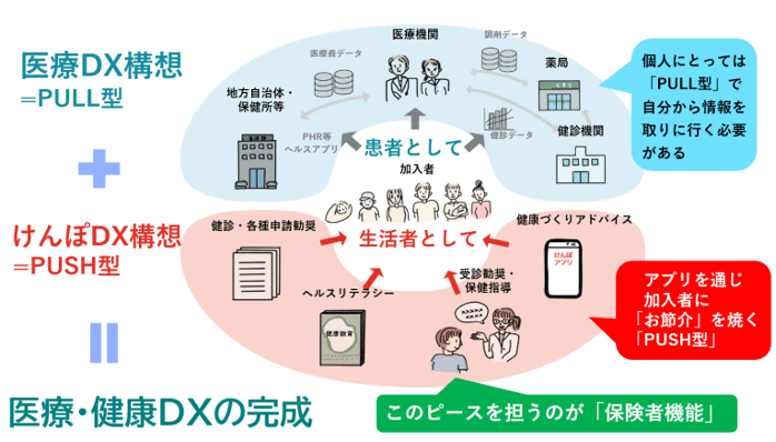 2026年1月にリリース予定の「けんぽアプリ」とは、加入者4,000万人の日々の健康を支える「けんぽDX」の枠組みの一環として始まる新たなサービスです。現状、協会けんぽのサービス等は、事業主経由によるものが主で、加入者に対して直接アプローチできる手段が限定的です。現在開発中の「けんぽアプリ」は、協会けんぽのサービスや情報を加入者に直接提供することを目的として、これにより更なる保険者機能強化が目指されます。