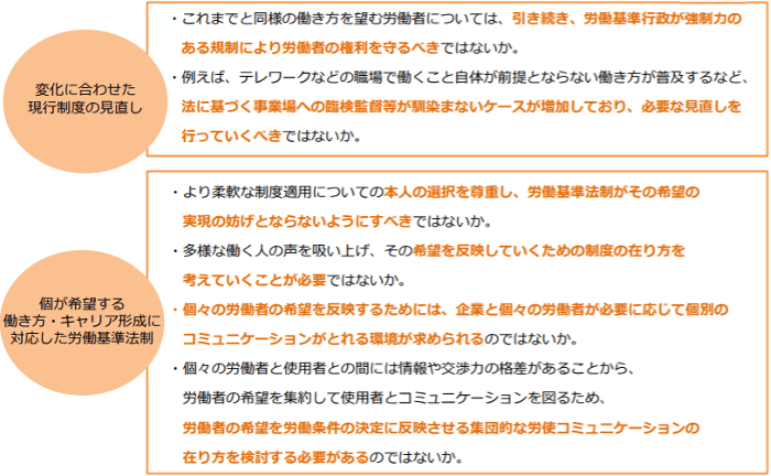 新しい時代に即した労働基準法制の方向性として、重要な視点を考えてみましょう。