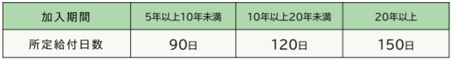 ・給付日数:雇用保険加入期間に応じて、以下の通りです。