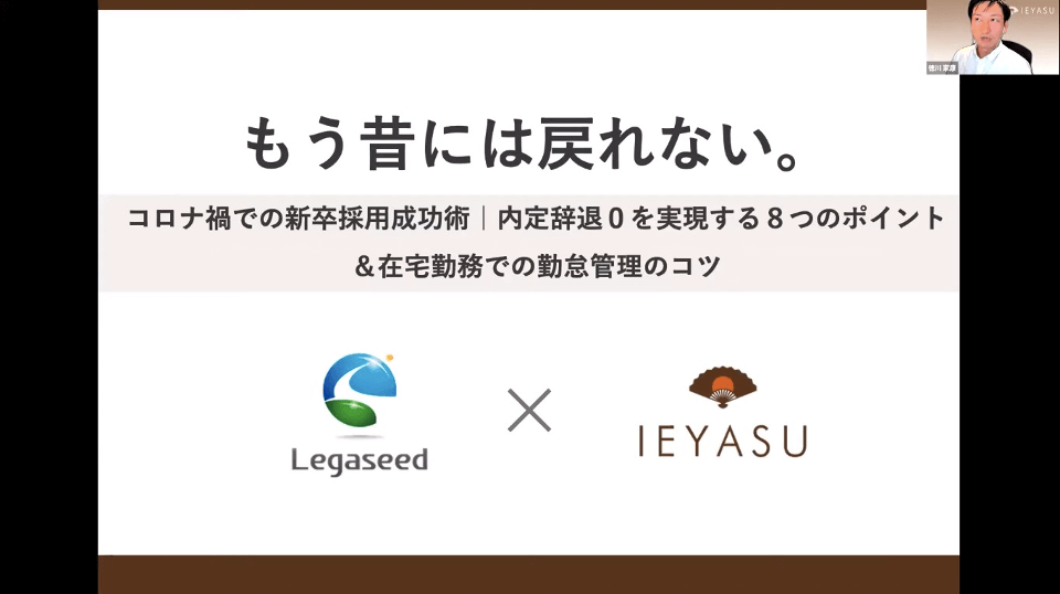 去る2020年7月28日、打刻ファースト運営のIEYASU株式会社は、無料のセミナー『コロナ禍での新卒採用成功術|内定辞退0を実現する8つのポイント&在宅勤務での勤怠管理のコツ』を開催いたしました。