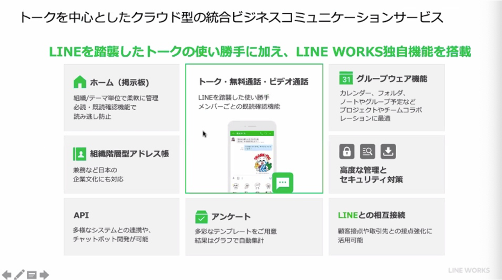 LINEを踏襲しているので、LINE WORKSも「チャット/トーク」機能が注目されがちですが、LINE WORKSにおいて充実しているのはトーク機能だけではありません。