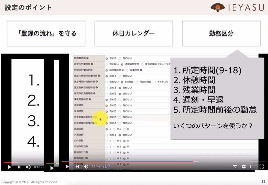 ポイント④「勤怠設定」設定ポイント