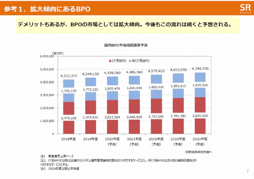 BPOの市場としても拡大傾向にあり、今後のこの流れは続くと予想されています。