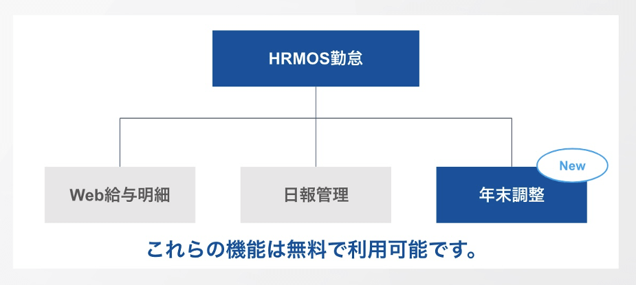 なお、「年末調整」機能に関しましては、「web給与明細」機能や「日報」機能と同じように、無料でご利用いただくことが可能となっております。