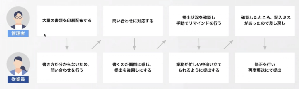 また、正しい情報を揃えるまでに従業員と管理者との間で何度もやりとりをしなければならず回収コストも高まります。