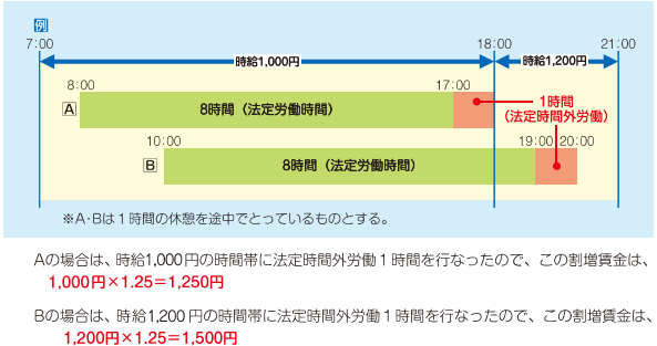 時間帯ごとに時給が異なる場合は「時間外労働が発生した時の時給」が基準となる