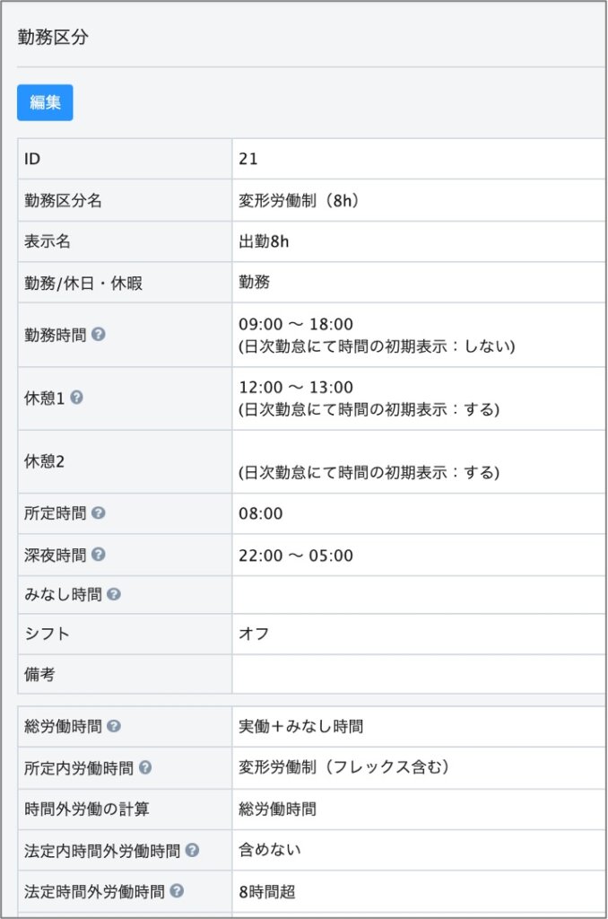 3. 勤務区分の作成「変形労働時間制」用の勤務