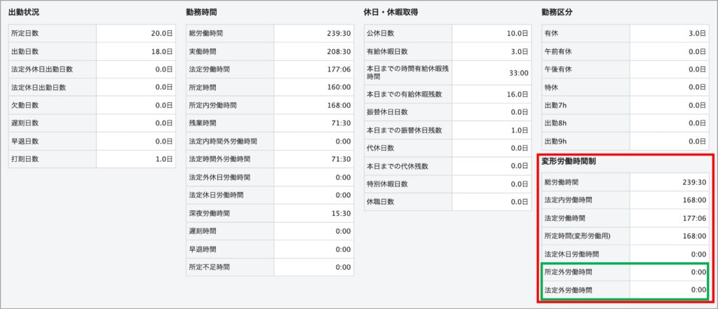 日次勤怠画面に変形労働時間制の枠があるか確認