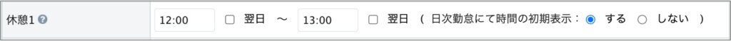 また、休憩も同様です。多くのお客様が「12時~13時」を「休憩1」初期表示としてご利用いただいております。