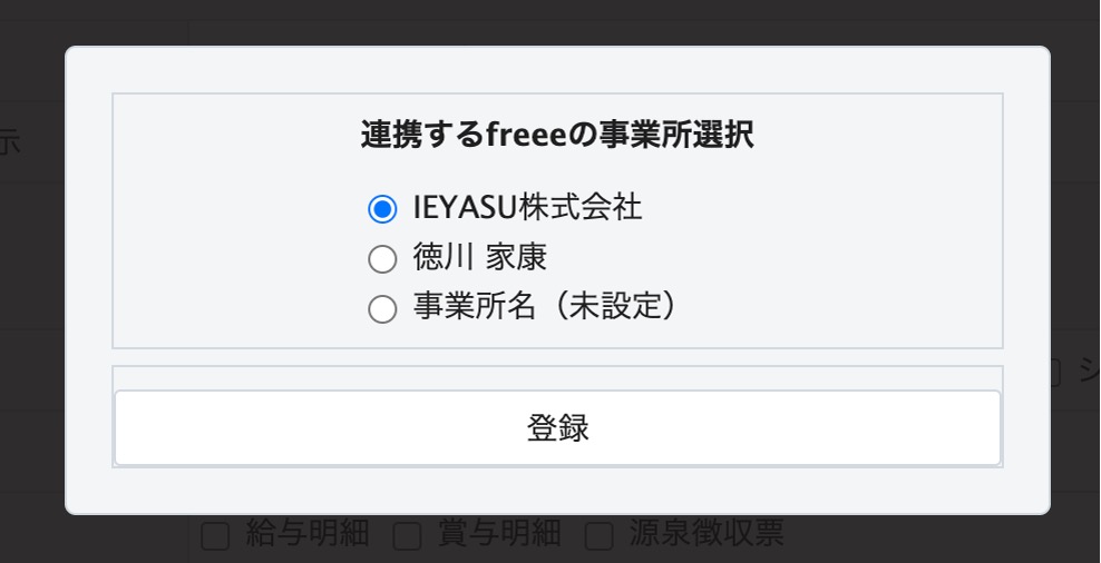 API連携手順2−2.「人事労務freee」の連携する事業所選択