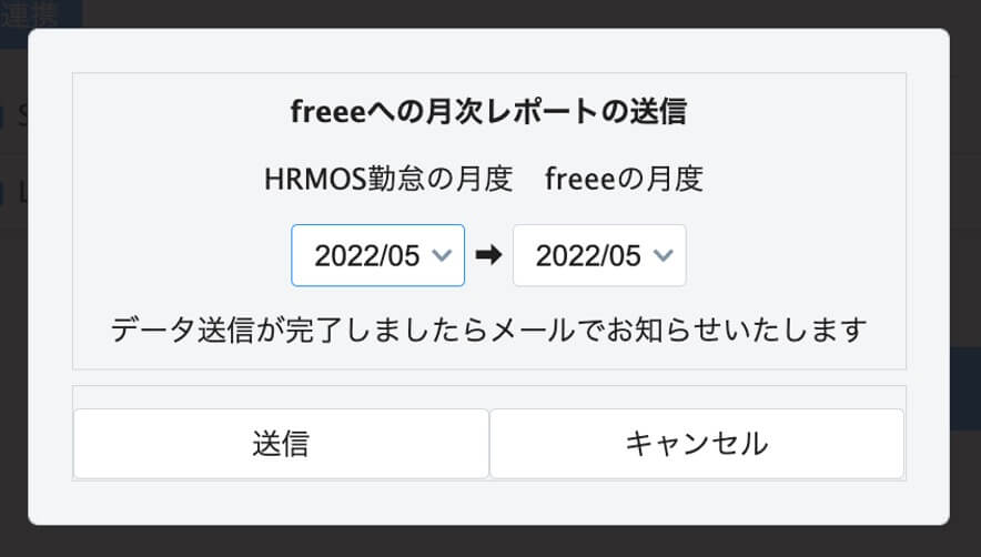 以上で、「HRMOS勤怠」から「人事労務freee」への月次勤怠データの送付が完了しました。