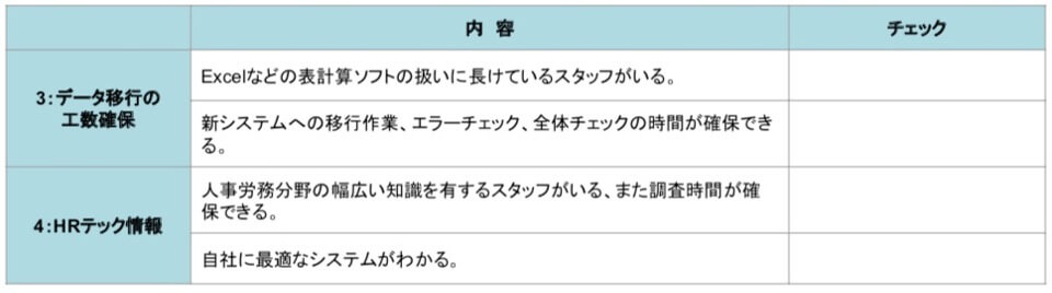 「3.データを移行する工数」「4.HRテックに関する最新情報」が不足している場合、以下のような代替策が必要になります。