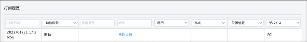 これで「本社」端末からの打刻だということを確認することができました。