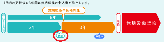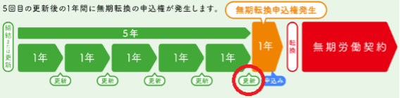 「無期転換ルールに基づく無期転換申込権が発生する契約の更新時」とは、具体的に以下のタイミングを指します。