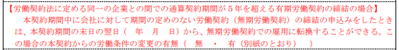 また、有期労働契約に関わる労働契約では、無期転換ルールに基づく無期転換申込権が発生する契約の更新時に、「無期転換を申し込むことができる旨(無期転換申込機会)」及び「無期転換後の労働条件」を明示することとされます。