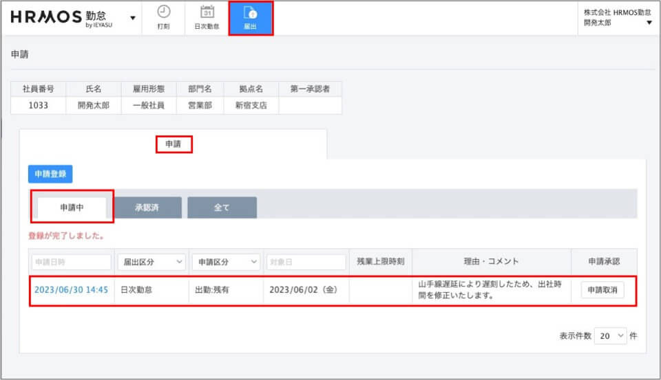 上部メニュー「届出」の「申請中」タブに追加されていることをご確認ください。
