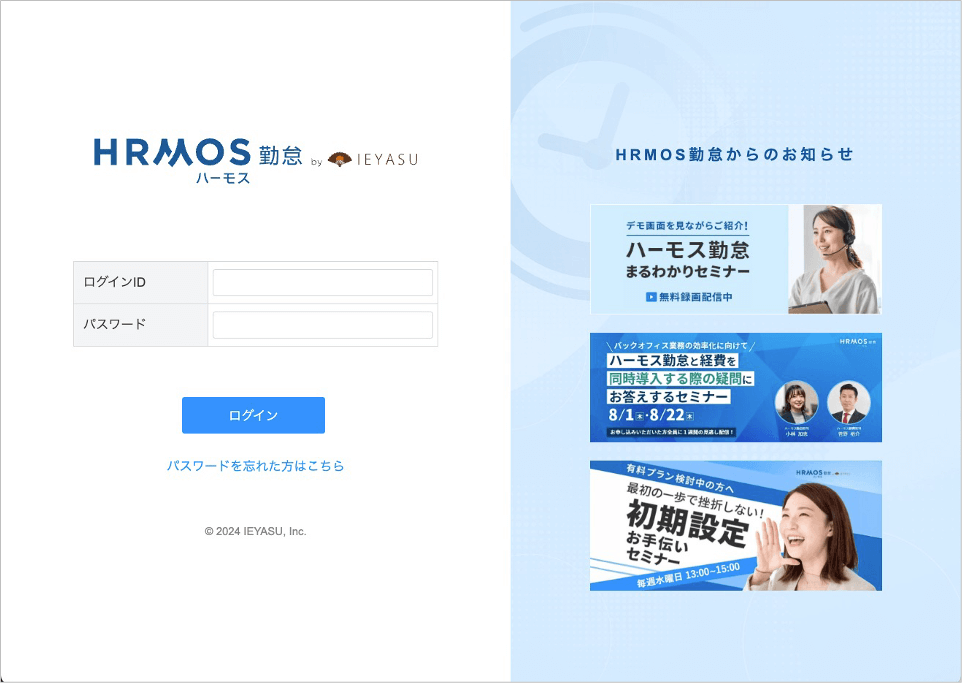 2024年9月10日にハーモス勤怠ログイン画面の変更を予定しております。
