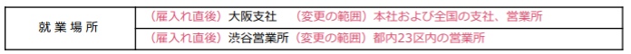 なお、テレワークを雇入れ直後から行うことが通常想定されている場合は「雇入れ直後」の就業場所として記載します。一方で、労働契約期間中にテレワークを行うことが通常想定される場合は、「変更の範囲」として明示することになります。この場合、労働者の自宅やサテライトオフィスなど、テレワークが可能な場所を明示するようにしましょう。