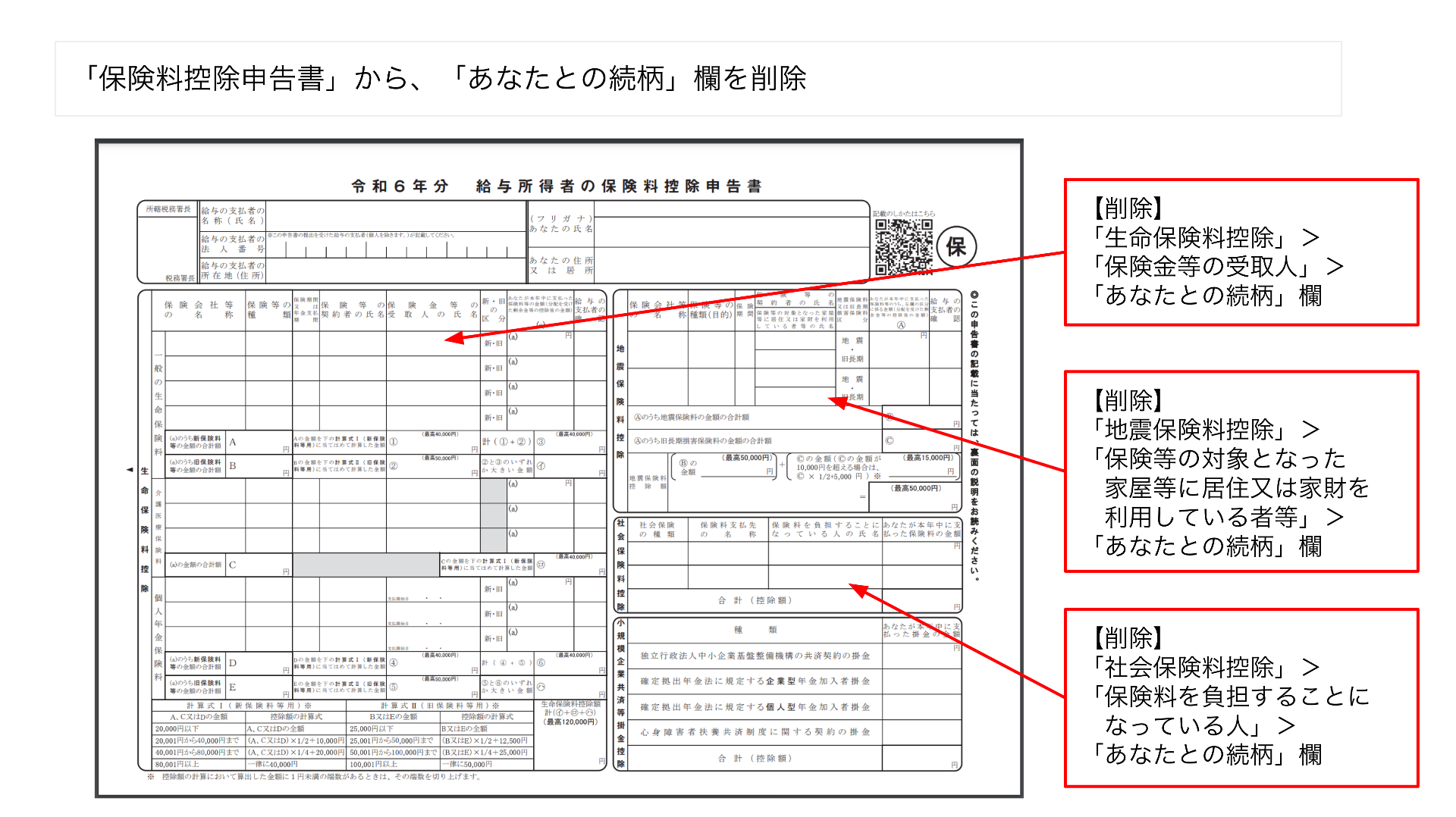• 「給与所得者の保険料控除申告書」の続柄省略