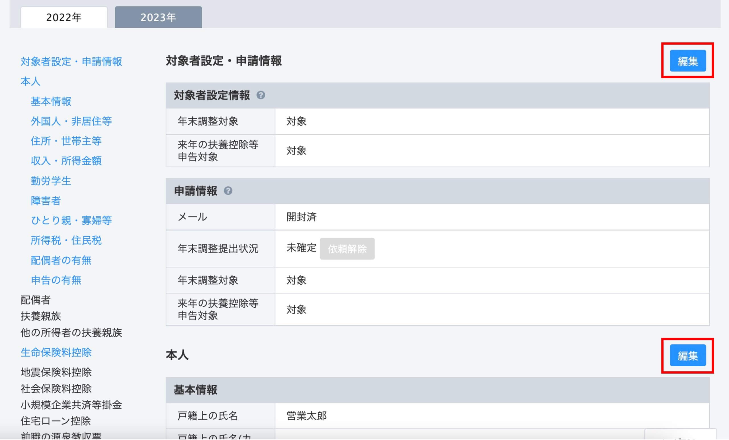 (初期設定STEP4で選択した今年と来年の年末調整対象者)