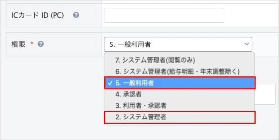 提出された年末調整の情報をチェックする人事担当者は「システム管理者」の権限を設定します。