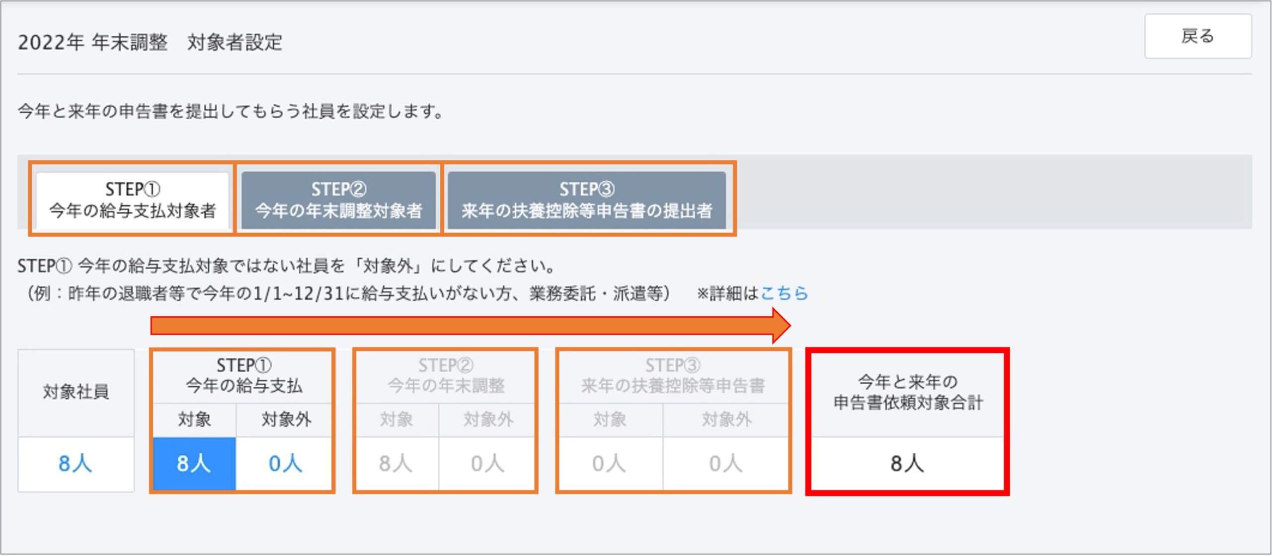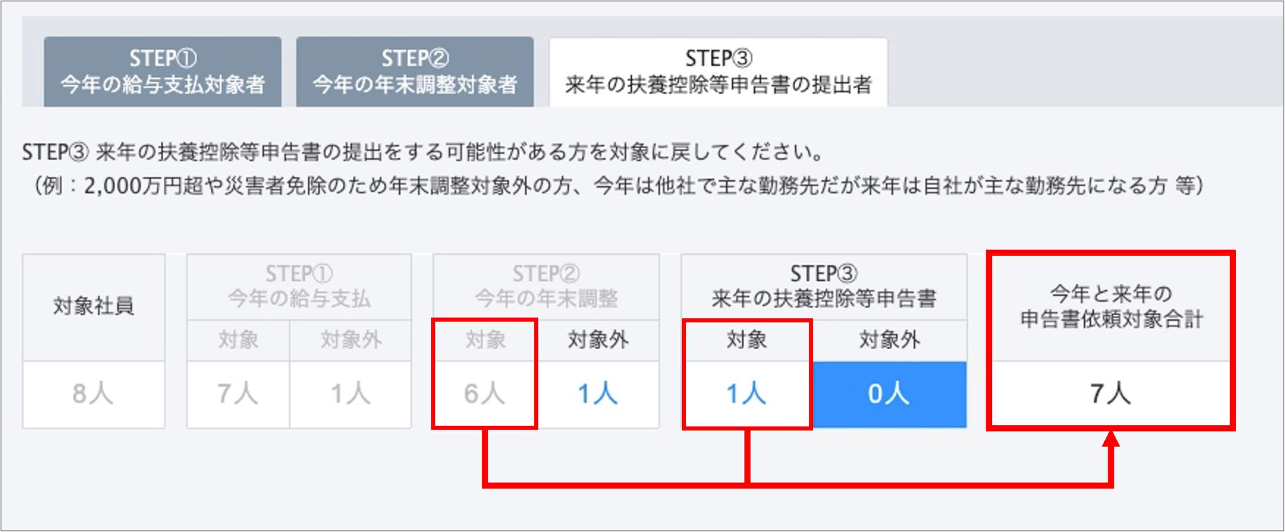 次に「STEP②今年の年末調整対象者」のタブをクリックします。