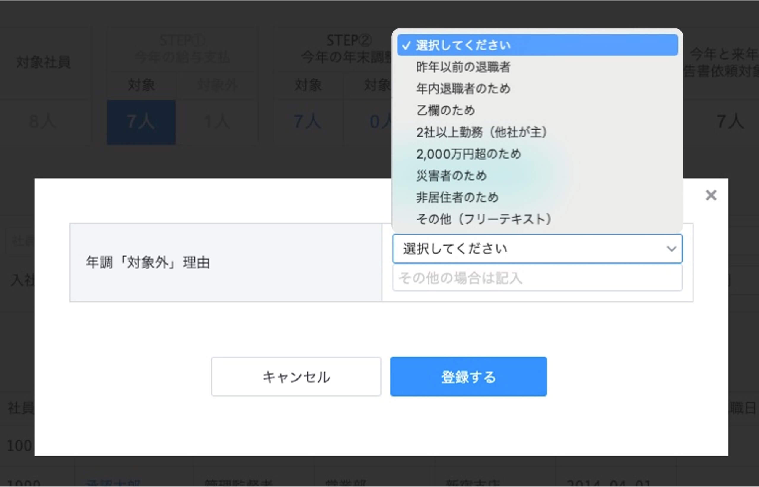 Q. 【年末調整】対象者選択画面の「年末調整の対象者とは」?