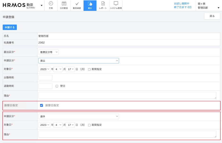- 振替出勤と振替休日の同時申請【リリース完了:2023年9月】