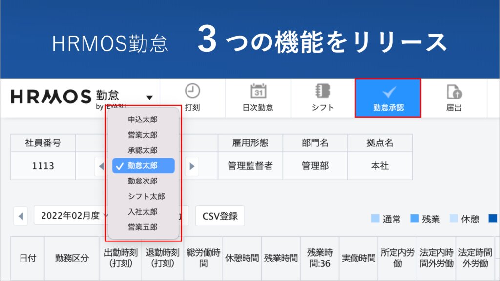 【新機能のお知らせ】「勤怠承認者のプルダウン表示+次へ前へボタン追加」等3つの機能を新たに追加リリース