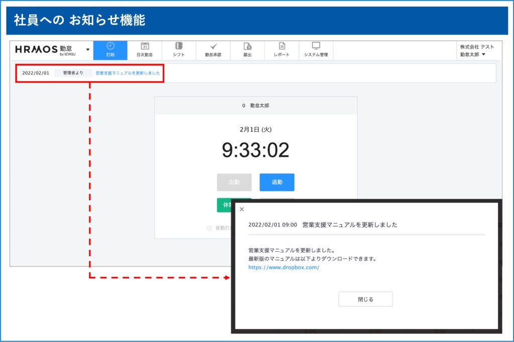- お知らせ機能が便利。勤務開始時・終了時に必ずハーモス勤怠を見るので発信したい情報が社員に届きやすくなった