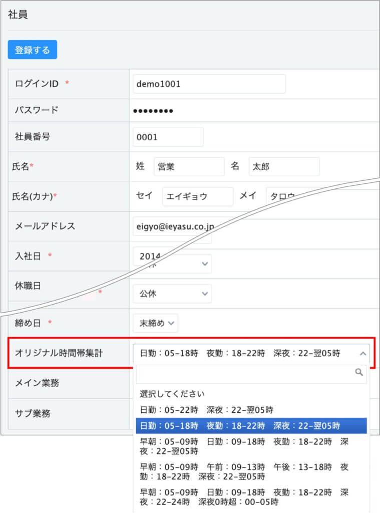 (設定2)社員画面からオリジナル時間帯と社員を紐付け