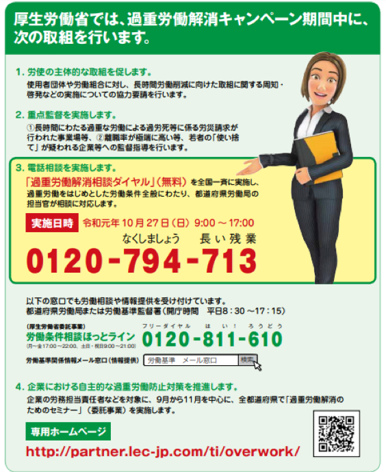 今年も、「過重労働解消キャンペーン」月間がやってまいります。本キャンペーンは過労死等防止対策推進法に定める「過労死等防止啓発月間」と併せて実施され、「過労死ゼロ」社会の実現、そのために不可欠となる過重労働の解消が目指されます。