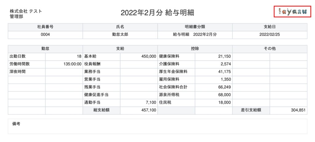 今回の機能改善により、給与明細・賞与明細・源泉徴収票をPDF出力した際に、ハーモス勤怠のロゴではなく、「会社のロゴ」が表示されるようになりました。