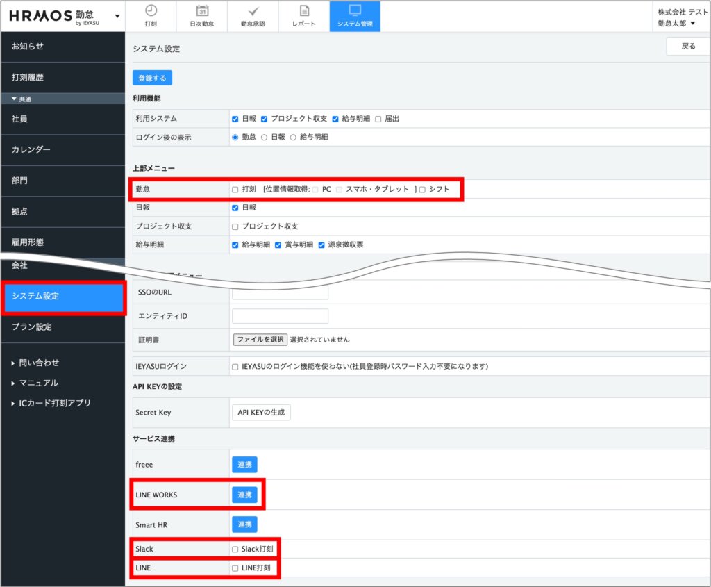 ②LINE WORKS打刻と連携させない(連携情報を入力しない)