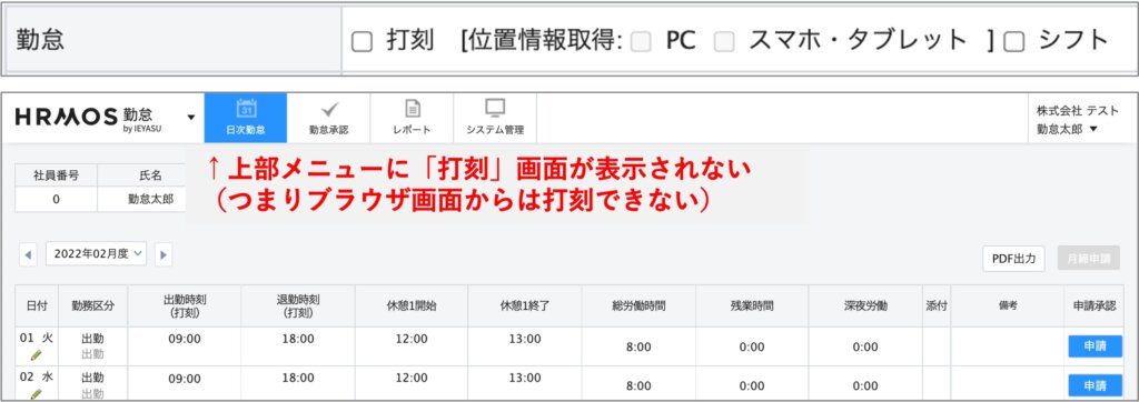 【設定①】システム設定画面で他の打刻を制限(管理者)