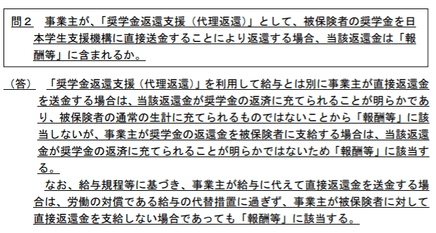 奨学金返還支援(代理返還)制度による返還額は、原則として社会保険料算定上の「報酬等」から除外