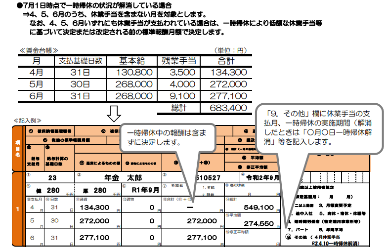 ⇒ その後一時帰休が解消され、継続して3ヵ月を超えて通常の報酬が支払われるようになった場合も随時改定の対象となります