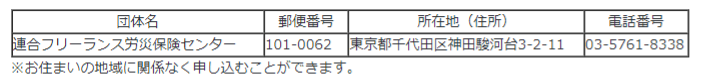 一方、上の表中の事業または作業に当てはまらない場合は、特定フリーランス事業として連合フリーランス労災保険センターに申し込みを行うことになります。